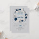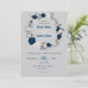 navy blue & white flowers botanical wreath wedding invitation