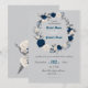 gorgeous navy blue and white flowers and grey leaves floral wreath wedding invitation