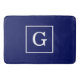 Navy Blue White Framed Initial Monogram Bath Mat
