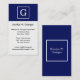 Navy Blue White Framed Initial Monogram Business Card