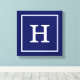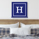 Navy Blue White Framed Initial Monogram Canvas Print