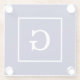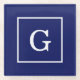 Navy Blue White Framed Initial Monogram Glass Coaster