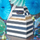 Navy Blue White Gold Stripes Birthday Baby Shower Favour Box