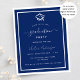 A modern, elegant invitation. A navy blue background decorated with white frames and a white cap. Personalise and add a name and party details. White text.