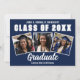 This modern navy blue and white custom senior graduation announcement photo collage card features your high school or college portrait pictures for the class of 2025. Customise with your graduating year under the bold handwritten script and grad cap for a great personalised graduate announcement.