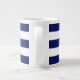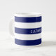 Navy Blue White Horiz Preppy Stripe #3 Monogram Large Coffee Mug