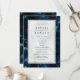 Elegant navy blue white marble with silver glitter frame wedding program.