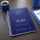 Navy blue white monogram business logo planner