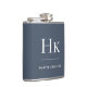 Navy Blue White Monogram Elegant Personalised Hip Flask