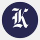 Navy Blue & White Monogram Initial Seals/Stickers. "K" Old English font. VIRGINIA5050* - Creative and unusual gifts for all occasions at www.zazzle.com/virginia5050* INTERNATIONAL GIFTS at zazzle.com/InternationalGifts, Florida Gift Store at zazzle.com/FloridaGiftStore*, RETIREMENT GIFT STORE at zazzle.com/RetirementGiftStore, I LOVE GIFT STORE at zazzle.com/ILoveGiftStore, and BIRTHDAY GIFT STORE at zazzle.com/BirthdayGiftStore*