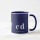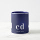 A navy blue background. The blue colour is uneven. Personalise and add a name and monogram initials (x3). The name is written in white with modern block letters.