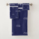 A navy blue background. Personalise and add your monogram letters, initials and name. White coloured letters. The name is written with a modern hand lettered style script. The monogram as a background pattern.