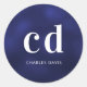 A stylish navy blue background, white coloured text. The blue colour is uneven. Personalise and add your monogram initials and your name. White letters.