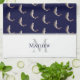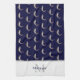 Navy Blue White Monogram name Trout pattern Tea Towel