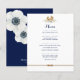 Nautical Boutique Co.'s charming navy blue and white budget wedding menu is the ideal addition to your nautical-inspired table setting. Featuring a mix of traditional navy and white block typography with modern script, this menu is beautifully accented with watercolor blue and white anemones, rope tied in an infinity knot, and a scrumptious watercolor crab on top. A delightful touch for your coastal celebration! 🌊🌸 #Nautical #NauticalWedding #CoastalWedding