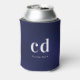 A navy blue background. The blue colour is uneven. Personalise and add a name and monogram initials. The name is written in white with modern block letters. For both him and her.