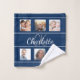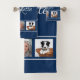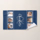 Navy blue white photo collage monogram script bath towel set