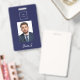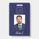 Navy blue white photo name business logo ID badge