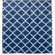Quatrefoil lattice pattern shower curtain in dark navy blue and white.