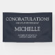 Navy blue and white retirement party "Congratulations" banner personalised with a name and years of service. Text, font, and wording are completely customisable with Zazzle's easy-to-use design tool. Contact us for help with customisation or to request additional matching products.