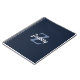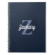 This simple, modern design features a grayish blue monogram initial and white retro script name on a navy blue background.