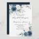 Navy Blue White Romantic Watercolor Floral Wedding Invitation