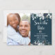 Chic, bohemian navy blue and white watercolor botanical rose floral, wedding save the date photo magnetic invitations. This modern wedding design feature navy, light blue and white floral arrangements, feathers on dark teal green colour background. Feature a hand lettered typography design with text „Save the Date” and one (1) vertical photo. Great choise for rustic and bohemian fall and winter weddings or any season. Easy to personalise it. #3353 If you need help or matching items, please contact me.