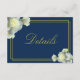 Navy Blue White Rose Reception Accom Details Enclosure Card