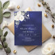 For an elegant winter party. A navy blue, uneven coloured background decorated with white florals, roses. Personalise and add your name and details.