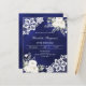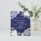 For an elegant winter party. A navy blue, uneven coloured background decorated with white florals, roses and white lace. Personalise and add your name and details.