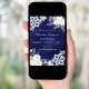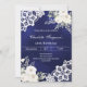 For an elegant winter party. A navy blue, uneven coloured background decorated with white florals, roses and white lace. Personalise and add your name and details.