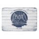 Add a touch of lakeside charm to your bathroom decor with our Navy Blue & White Rustic Wood Nautical Lake House Bath Mat! Featuring a charming lake house logo in elegant navy blue tones, including pine trees, canoe paddles, a tranquil water pond, anchors, and a cosy house illustration on a white rustic wood background, this bath mat brings the serenity of the lake to your home. Personalise the curved layout on the logo with your family name in the same elegant blue typography. Below the logo, add your own text, such as the established year, lake name, or house address, making it a truly unique piece. Perfect for the upcoming family reunion or as a thoughtful gift for a new house near the lake, this bath mat adds both style and functionality to any bathroom.