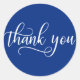 NAVY BLUE White Script Calligraphy Thank You Classic Round Sticker