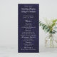 This elegant 4" x 9.25" wedding reception menu features a rich navy blue textured background with refined script and classic serif typography for a timeless, formal look. Designed in a tall, narrow format, this menu clearly presents each course while adding a polished touch to reception tables. The deep navy color and classic layout make it ideal for traditional, black-tie, and evening wedding receptions.