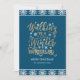 Christmas greeting card in navy blue with white snowflakes and gold calligraphy script text, "Walking in a winter wonderland." A customisable message, "Merry Christmas" with your family name is at the bottom. Formatted in a vertical format. Contact us for help with customisation or to request matching products.