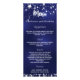 Birthday party menu card. Personalise and add a name, age, date and the menu. A navy blue background. The blue colour is uneven. Decorated with stars. White coloured letters.