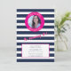 Navy Blue White Stripe 21st Birthday photo Invitation