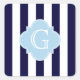 Navy Blue White Stripe Lt Blue Quatrefoil Monogram Square Sticker
