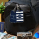 Modern navy blue and white striped pattern with custom monogram to add your own initial, name or text. Personalised monogram luggage tags - matching passport holders also available:
