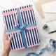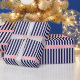 Navy Blue White Stripe Pink Name Monogram Wrapping Paper