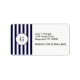 Navy Blue and White Medium Stripes Pattern with Round White Monogram Label ===========