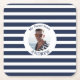 Navy Blue White Striped Nautical Photo Square Paper Coaster