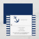 Navy Blue White Stripes Anchor Nautical Theme RSVP Card