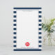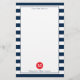 Navy Blue White Stripes Minimal Chic Red Monogram Stationery