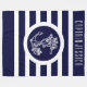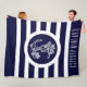 Navy Blue & White Stripes Nautical Floral Anchor Fleece Blanket
