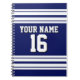 Navy Blue White Team Jersey Custom Number Name Spiral Notebook