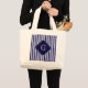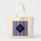 Navy Blue White Uneven Stripes Navy Monogram Label Large Tote Bag