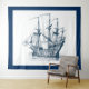 Navy-blue & white vintage wind-sailing boat tapestry