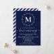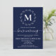 Navy Blue White Wreath Monogram House Warming Announcement