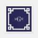 Navy Blue Wht Greek Key #2 Framed 3 Init Monogram Napkin